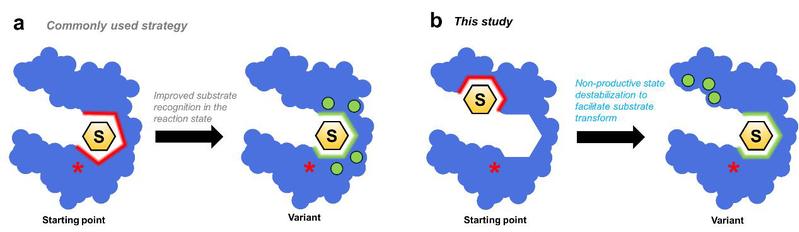 该研究突破了传统蛋白质工程领域主要聚焦于活性中心几何优化的策略,提出了通过调控底物通道内构象翻转来提升催化效率的全新工程范式,并通过计算模拟定量揭示了突变降低翻转能垒的机制,为理性设计高效生物催化剂提供了创新思路。
